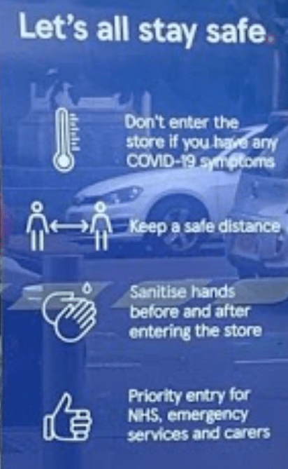 Figure 5. The sign outside of Tesco Express, outlining the safety measures in place. Credit: Rebecca Dunn