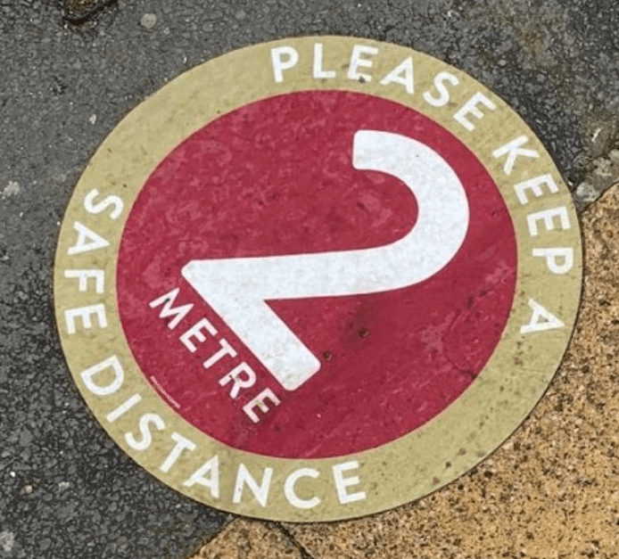 Transport has removed the physical friction of distance as a result of globalisation, allowing people to migrate into Didsbury and changing the demographic characteristics, therefore changing the social lived experience. The M60 and A34 roads provide links to Manchester city centre, as well as the Metrolink line and bus routes, but also they provide links to the rest of the country. Therefore, tourism and commuting to Didsbury is enabled, creating a flow of people into Didsbury to support the local economy. However, the COVID-19 pandemic has reduced the feasibility of tourism due to international travel restrictions and reduced operation of local businesses, preventing the town from thriving. Technology also removes the global friction of distance (Miller, 2007) and will largely influence the future of Didsbury as a modern and sustainable town. The development of Didsbury Technology Park is likely to have a real impact at both a local level and on the wider regional economy, as it becomes home to clusters of high-growth, science and technology businesses (Place North West, 2018). This centre of innovation is likely to be at the forefront of Didsbury’s future in terms of becoming sustainable and combatting the local impacts of climate change, which in turn may create a new way of living. The COVID-19 pandemic may hinder the technology park from flourishing though due to social distancing measures preventing the operation of the full workforce and the difficulty of engaging the wider community with some of the population shielding from the public and most of the population remaining at home. Figure 7 shows the use of markers for social distancing required under Government guidelines. These force people to stay apart and create a new ‘normal’ within society.