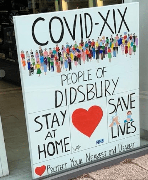 The pandemic has forced a new normal to exist, changing the atmosphere felt in the village centre. Figure 5 shows the precautions that many stores in the UK have to take to protect the workers and the wider community, being an essential shop that many rely on. Despite the great difficulties faced by Didsbury and having to physically be apart due to the pandemic, there is evidence of a strong sense of community. Figure 8 is a clear example, reminding the local residents to work together to stay apart in order to tackle the virus. This positive message connotes an importance of family safety, but also resilience, no matter how long it takes to reach the other side.