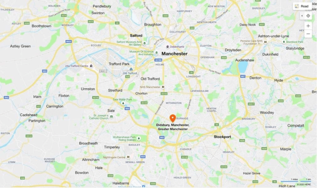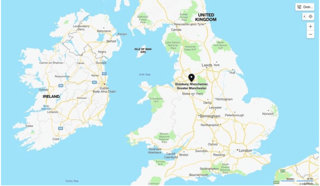 Figure 1. A map to show the location of Didsbury on a national scale.