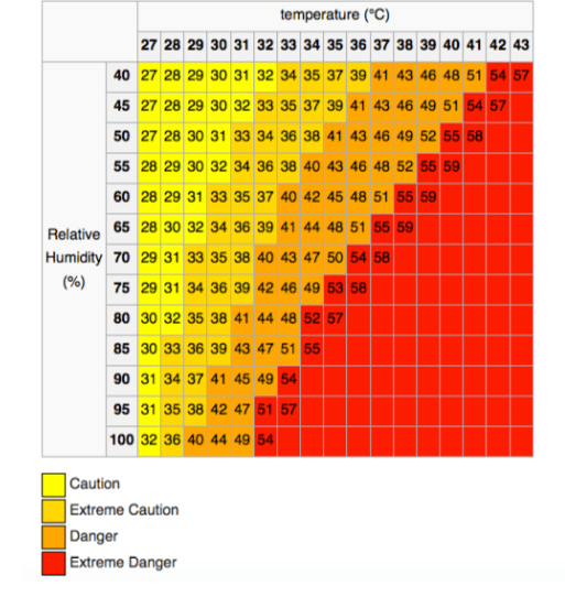 - Extreme Caution: 33-39℃