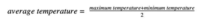 For reliable weather data, secondary data was used from the weather archives of the Indian Meteorological Department. The temperature and relative humidity data was from the Colaba Surface Observatory at 8:30am everyday. From this, the maximum temperature, minimum temperature, and relative humidity data in the month of October from 2009-2019 was obtained. The average temperature was then calculated by using: