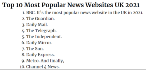 - Most Popular News Websites UK 2021 Top 10 – UGWIRE (Accessed 9th August 2021)