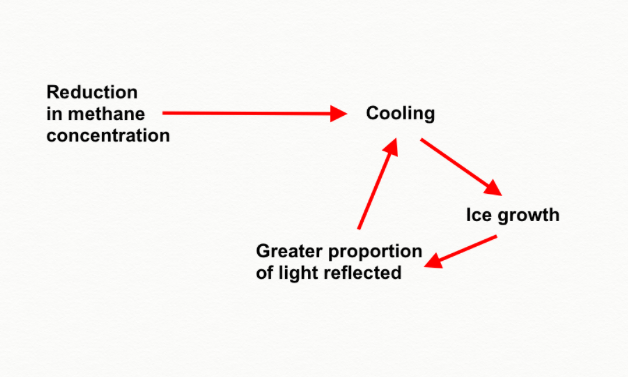 One problem that quickly emerges with a global glaciation can be expressed in the question “We know how to get into the ice age, but how do we get out of it?” It happens that cooling down is much easier than heating back up to pre-glaciation temperatures. Here we see the worrying influence of feedback loops.