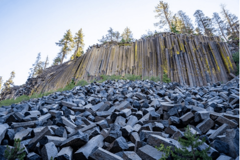 Figure 6: Columnar basalt formations in the Long Valley, also known as the Devil’s Postpile. Source: https://thatadventurelife.com/2020/08/11/devils-postpile-national-monument-mammoth-lakes-ca/.