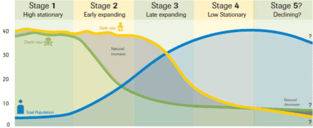 Grover D. (2014, October 13.) “What is the Demographic Transition Model?” Population Education, Available at: https://populationeducation.org/what -demographic-transition-model/ (accessed 04/06/23)