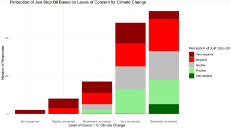 Figure 3. A stacked bar chart showing students’ perception of JSO across various levels of climate change concern.