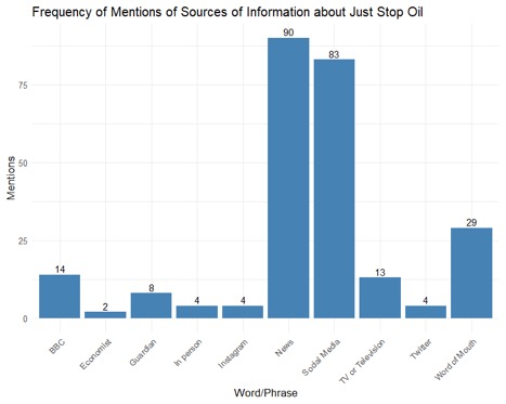 Q5. Please specify your main sources of information about the ‘Just Stop Oil’ campaigns. (This could include social media, news outlets, word of mouth, television, etc.)
