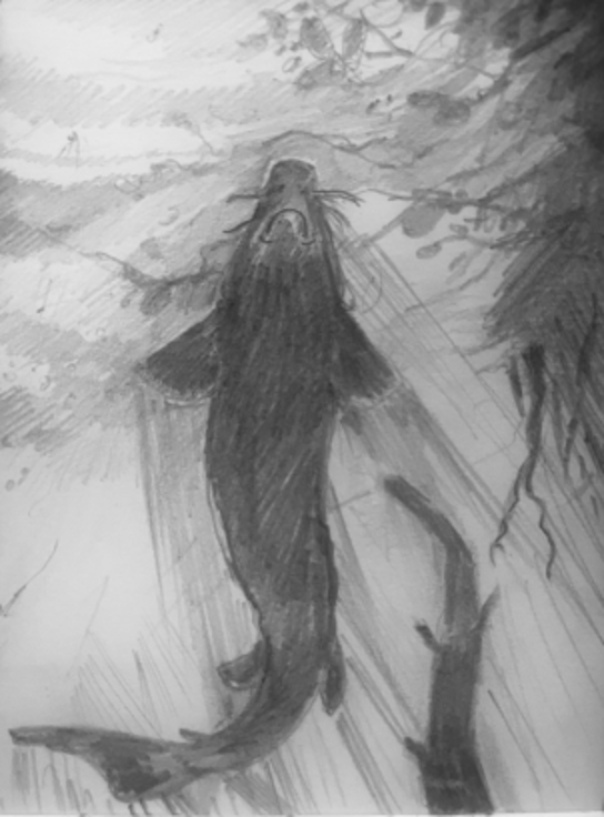 Fig. 3 Sturgeon from the perspective of river gravel. Sketch by author