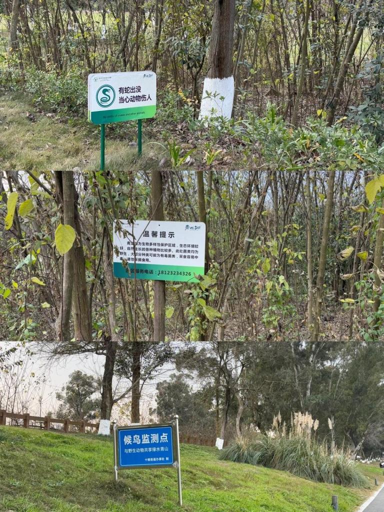 Although we did not catch sight of too many wild animals, the warnings in the park indicate there are some of them in the area. The first sign says, ‘Be careful of snakes and other animals’. The second writes ‘Qinglong Lake is a biodiversity protection area with a good ecological environment and more natural plants. All the fungi here are wild, and most of them may be toxic fungi, which can be poisonous if eaten. Please do not pick and eat’. The third writes ‘Migratory Bird Monitoring Site. Share green waters and mountains with wild animals’. These signs imply that such areas have a relatively high degree of wildness, but as humans are still inevitably present in parks, they are made aware of by the signs to be cautious of the wildlife. At the same time, through making people pay attention to wildlife and engaging the local publics with its maintenance, rewilding areas in the urban system also serve as an opportunity for education (Turnbull et al., 2025).